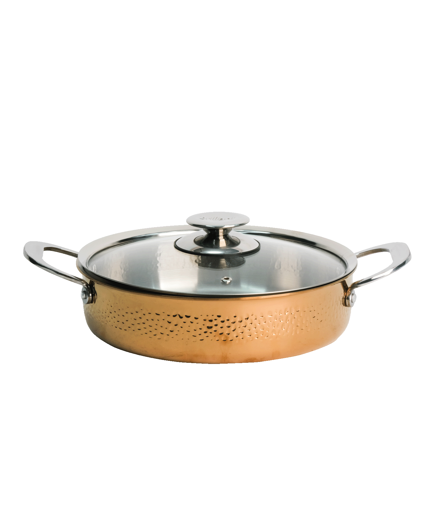 Brillant CLK-TN-5980, bakırın göz alıcı estetiğini paslanmaz çeliğin dayanıklılığıyla bir araya getiren, 26 cm ölçüsünde özel üretim bir sahandır. Dış yüzeyindeki bakır görünümlü doku, mutfağınıza sofistike ve premium bir hava katarken; modern detaylarıyla hem şık hem de profesyonel bir kullanım sunar.