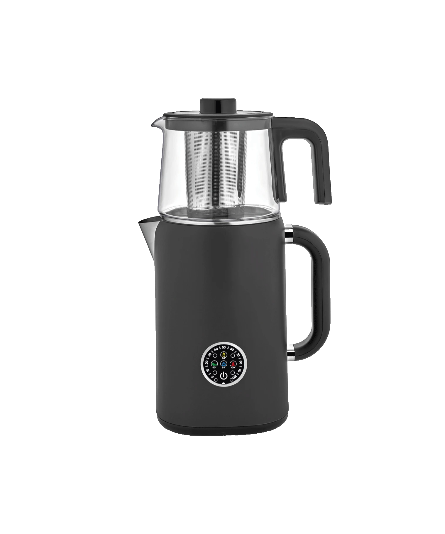 Isıya dayanıklı cam demlik, çayın doğal aromasını ve berraklığını korurken; paslanmaz çelik süzgeç sistemi sayesinde ideal demleme sağlar. Güçlü kettle haznesi suyu hızlıca kaynatarak zaman tasarrufu sunar ve günlük çay keyfini pratik hale getirir.